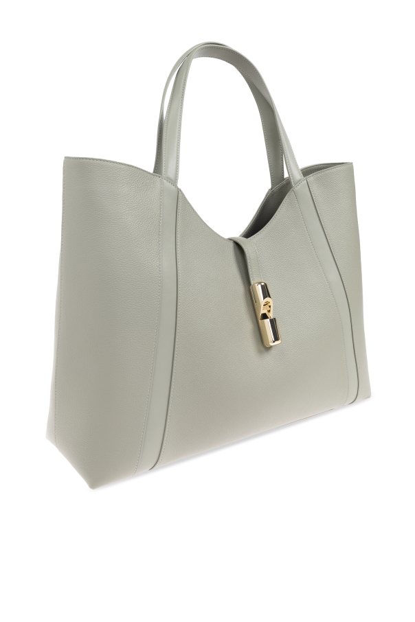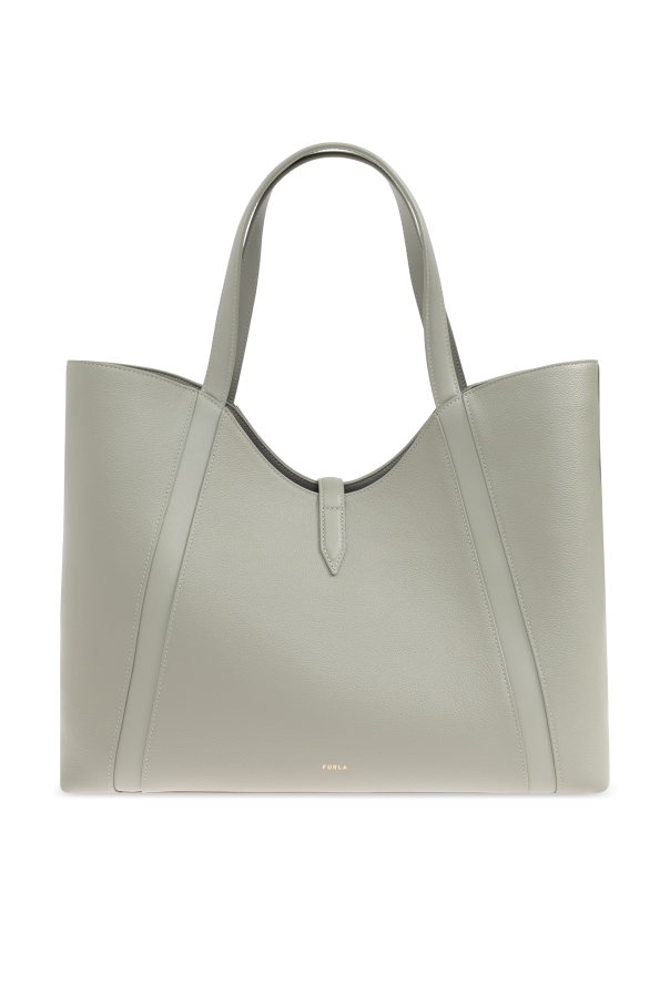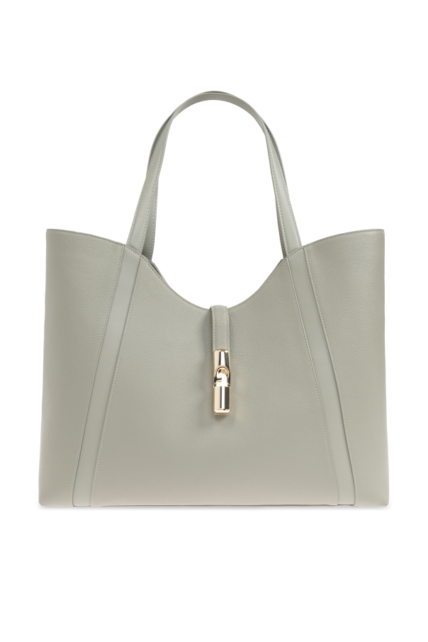 Introducing the exquisite Goccia XL shopper bag, a masterpiece of modern elegance and timeless sophistication. Crafted by the renowned Italian brand Furla, this bag seamlessly blends classic style with contemporary flair. The bag\'s rectangular shape with a subtle upper curve exudes a chic, modern aesthetic. Made from premium grainy leather, it boasts both elegance and durability. Its dominant shade of light green offers a versatile and stylish appeal. Featuring a gold-toned metal clasp on the front, this bag not only adds a touch of luxury but also serves a practical purpose. Inside, discover a spacious compartment, a zippered pocket, and two slip pockets, ensuring ample space for all essentials. The discreet brand name embossed on the bag accentuates its exclusivity, making it ideal for women who value both style and practicality in everyday use. Why Choose This Product? High-quality grainy leather for a luxe finish. Versatile light green color for a stylish look. Functional design with multiple pockets. Exclusive Furla branding for a touch of elegance.