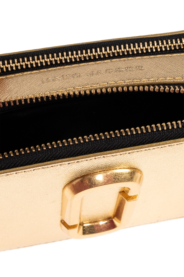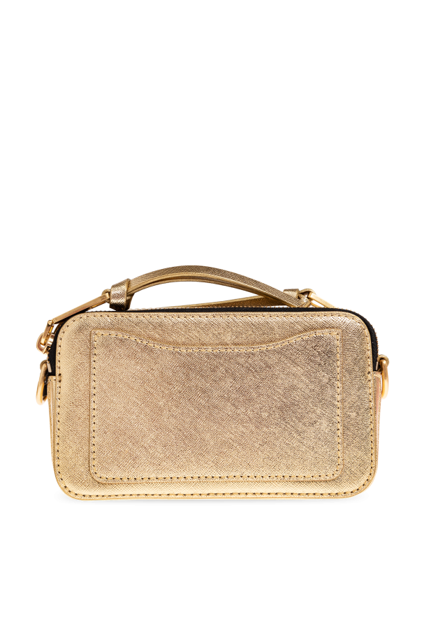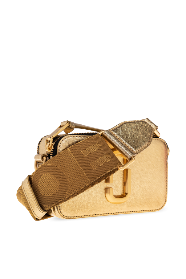 Gold-tone ‘The Snapshot’ shoulder bag from Marc Jacobs. Made from saffiano leather, this design showcases an embossed logo accompanied by a metal logo plaque on the front, one slip pocket on the back, gold-tone metal hardware as well as a detachable and adjustable shoulder strap and two internal zip compartments – one has a slip pocket inside.