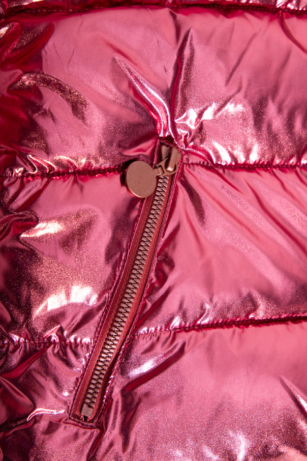 Pink padded jacket with a metallic finish from Stella McCartney Kids. Fastened with a zip, this garment features a detachable snap-fastened hood, two zip pockets, ribbed cuffs and an elasticated hem with a snap-fastened closure.
