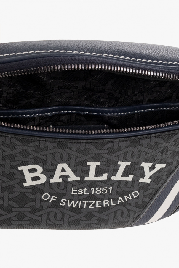 Navy, grey and cream ‘Chatey’ belt bag from Bally. Fastened with a two-way zip, this model features a white logo print, monogram pattern, zipped back pocket, adjustable belt, dark silver-tone metal hardware and one internal compartment with one slip pocket.