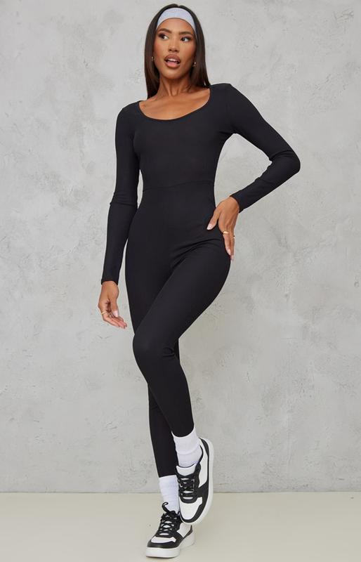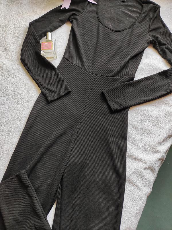 Этот комбинезон идеально подходит для прогулок или же уместно использовать как для занятий спортом или фитнесом 💕 Благодаря черному ребристому материалу с длинными рукавами, глубоким вырезом и фасоном,вы будете выглядеть на все 💯. Носите с массивными ботинками и золотистыми аксессуарами для повседневной атмосферы, или под кроссовки 💕