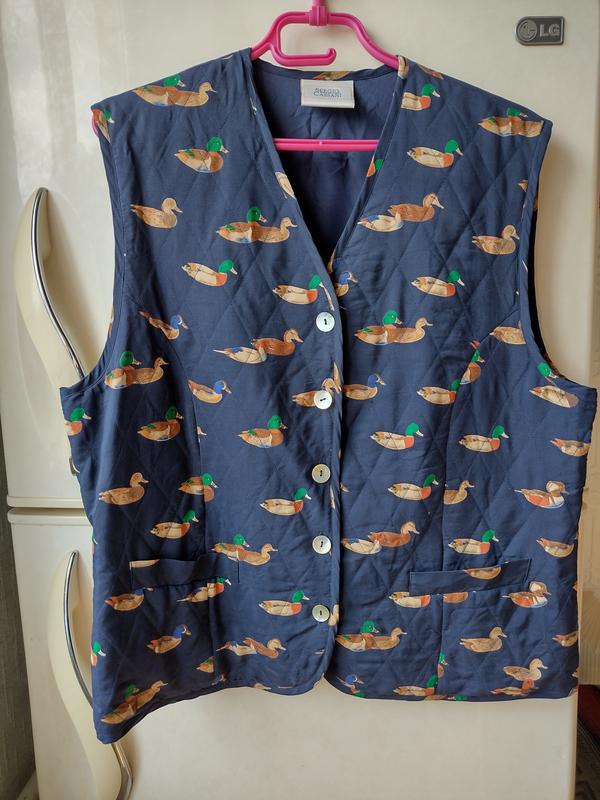 Винтаж в отличном состоянии, от итальянского бренда премиум-класса Sergio Cassani. Верх шелк, стеганый. В качках. Цвет темно синий. Размер евро 44. ЗАМЕРЫ: ПОГ-57, боковой шов-34, высота проймы рукава-25, длина-65.