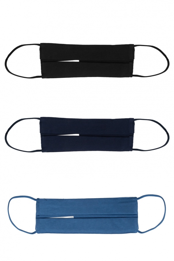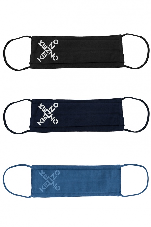 Navy blue, blue and white face mask three-pack from Kenzo. Crafted from cotton, each item showcases a logo pattern print.