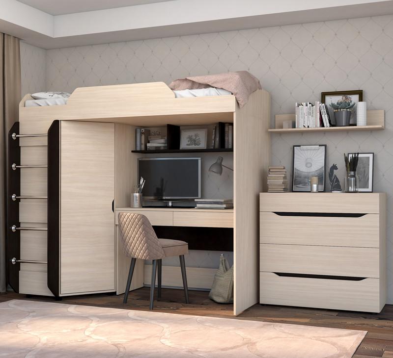 Тип:Двухъярусная , Подростковая ,Особенности:С комодом , С матрасом , С ящиками ,Материал:ДСП , - Shipping