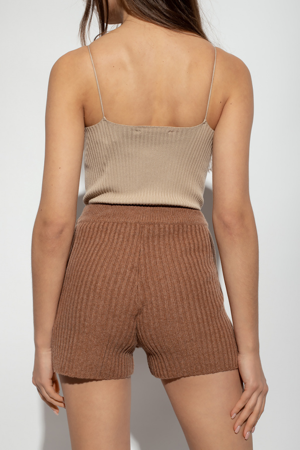 Beige ‘Avedon’ slip bodysuit from Aeron. This style was made of a ribbed knit.