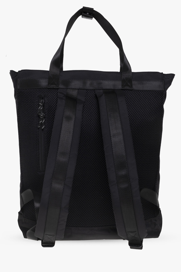Black ‘Luis’ backpack from Samsoe Samsoe. Crafted from recycled material, this design fastens with a zipper and showcases a logo patch on the front, two half-round handles, adjustable shoulder straps, black metal hardware and one internal compartment with one zip pocket and one slip pocket.
