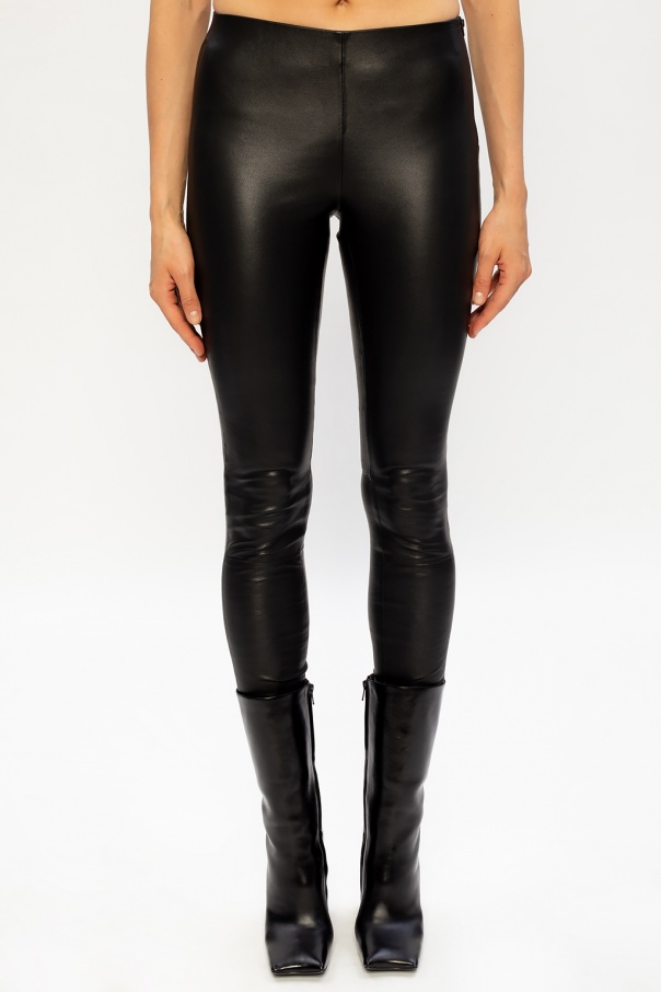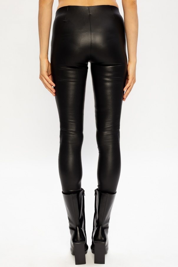 Black trousers from Samse Samse. Crafted from leather, these slim-fit pants feature zip fly and an elasticated waistband.