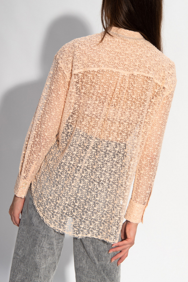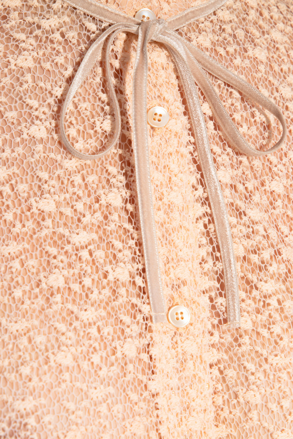 Light pink lace shirt from Forte Forte. Fastened with buttons, this garment features a high neck embroidered with a stripe and long sleeves with button cuffs.