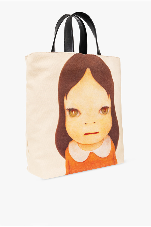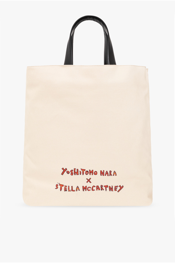 Light beige shopper bag from Stella McCartney x Yoshitomo Nara. Crafted from cotton canvas, this model is complete with a multicolored graphic with the artist work, two half-round faux leather handles in black, shoulder strap and one internal compartment with one slip pocket.