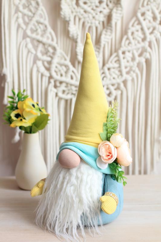Такой гном сможет прийти на смену зимним персонажам, украсит дом и добавит в атмосферу нотки весенней свежести и предвкушение теплых солнечных дней