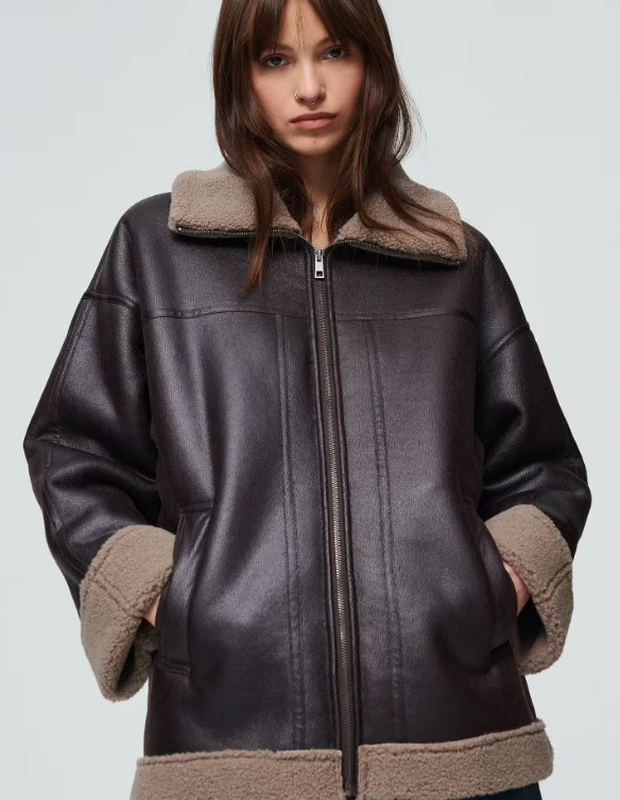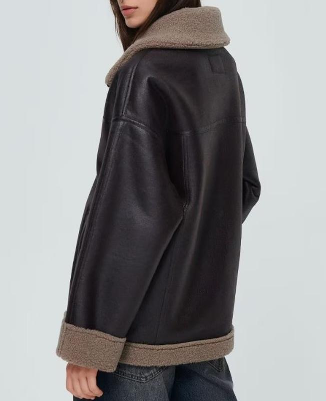 Зручна і комфортна дублянка зі штучної шкіри і штучного хутра, бренду House. Розмір M/L. Дублянка оверсайз, тому підійде й на трохи більший розмір. Довжина 70 см. Обхват грудей 110 см.
