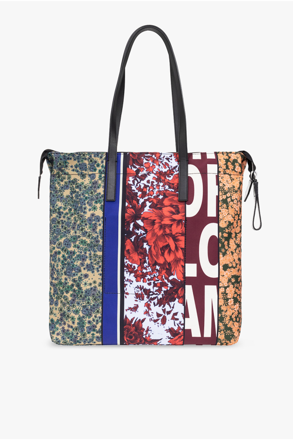 Multicolored shopper bag from Dries Van Noten. Made of fabric with a decorative floral print, this model features leather trimming, zip fastening, logo detail, two half-round straps and one internal compartment with one slip pocket.