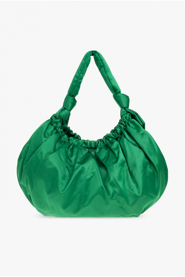 Green shopper bag from Ganni. Crafted from recycled materials, this design features a magnetic fastener, a logo application, silver-tone metal hardware and one internal compartment with a zip pocket.