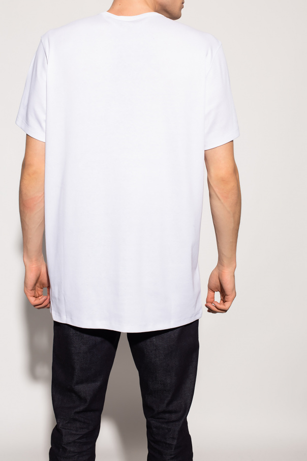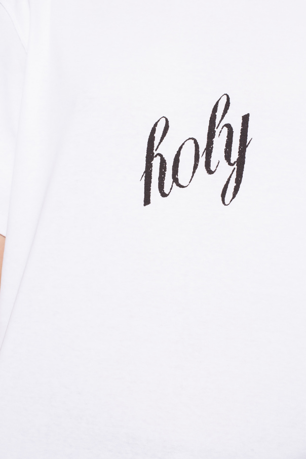 White T-shirt from Ann Demeulemeester. Made of cotton, this short sleeve design features a printed logo pattern in black and a ribbed crew neck.
