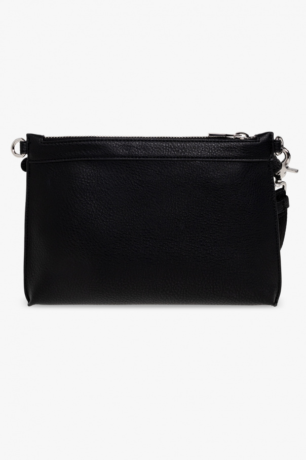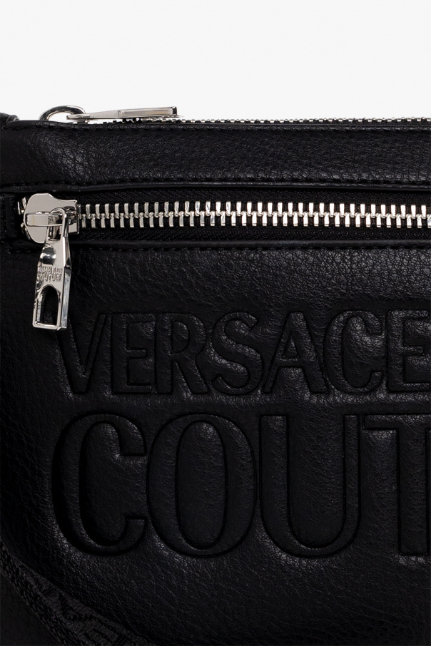 Black handbag from Versace Jeans Couture. Made of faux leather, this model features a front zip pocket, quilted logo, detachable logo-embroidered wrist strap, silver-tone metal hardware and one internal compartment with one slip pocket and one zip pocket.