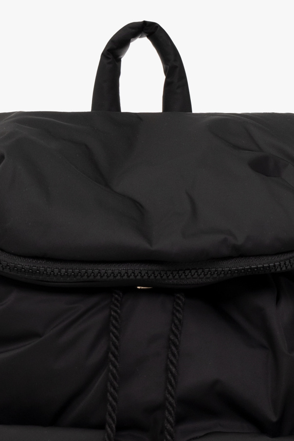 Black ‘Joy Rider’ backpack from See by Chloé. Made of recycled Repreve® fabric, this model features a flap with a snap closure and drawstrings, three zip pockets, detachable logo-embroidered star charm, top handle, adjustable shoulder straps, gold-tone metal hardware and one internal compartment with three slip pockets.