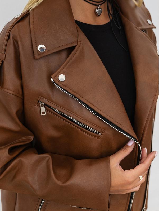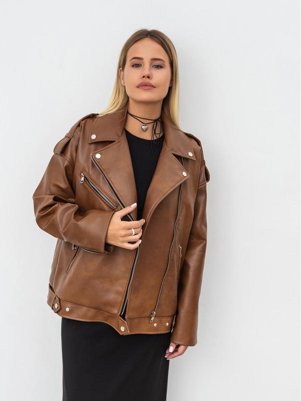 Матеріал:Штучна шкіра ,Модель:Косуха ,Особливості моделі:З кишенями , З поясом , На змійці ,Особливості крою:Оверсайз ,Принт:Без принту , - Shipping