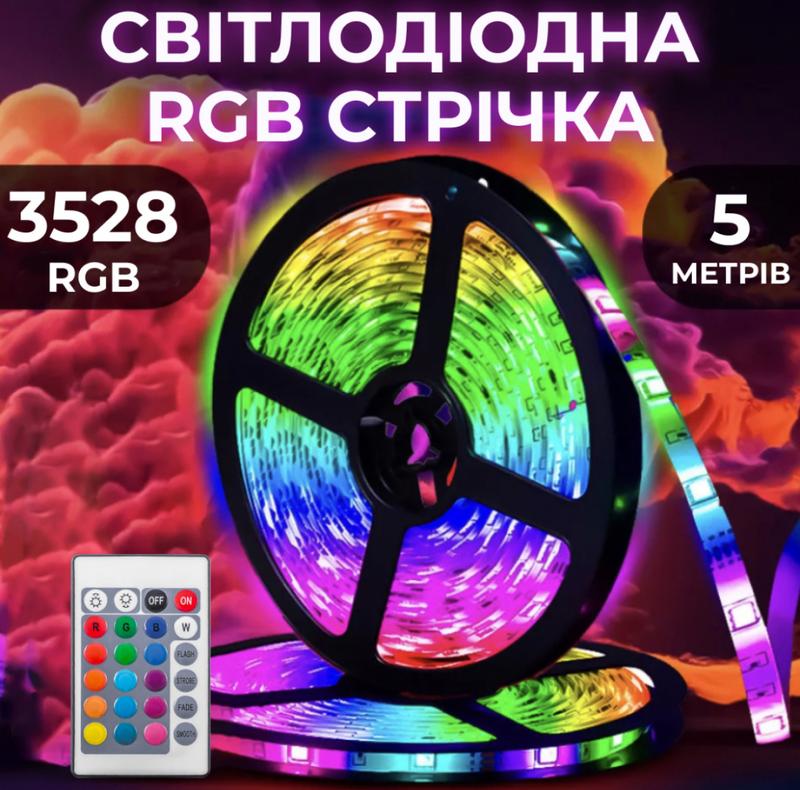 Мультицвет: эта светодиодная лента разработана для создания разнообразных эффектов. С помощью пульта вы можете легко выбирать любой цвет или создавать переходы между цветами, что делает ее идеальным выбором для декора помещений, праздников и событий.