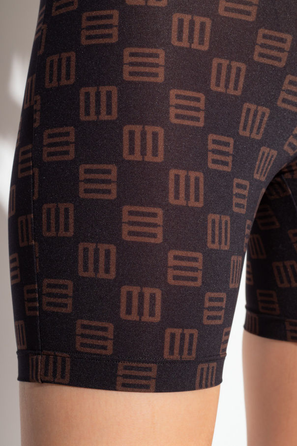 Black leggings from Ambush. Cut with a cropped fit, they feature a branded waistband and a brown monogram print.