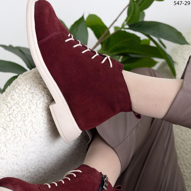 Не прогавте шанс придбати наші замшеві жіночі черевики бордового кольору.
