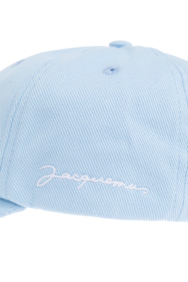 Light blue baseball cap from Jacquemus. Made from cotton, this item adjusts via a back strap and features an embroidered white logo on the side.