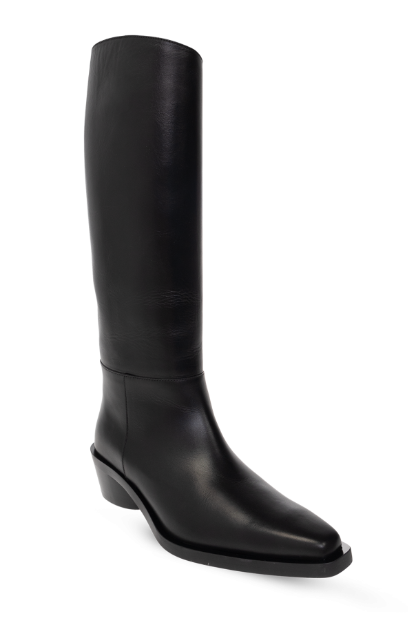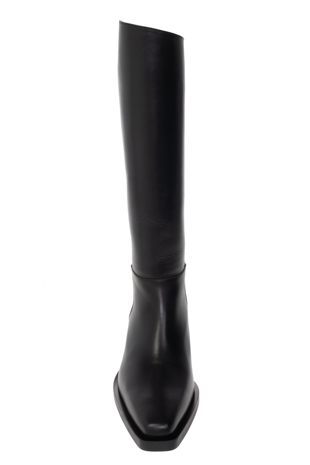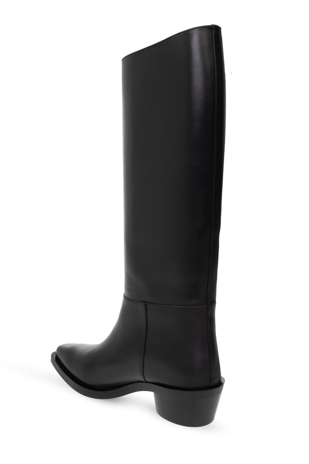 Black slip-on boots from Proenza Schouler. Made of leather, this slip-on pair features an elongated toe and black leather sole.