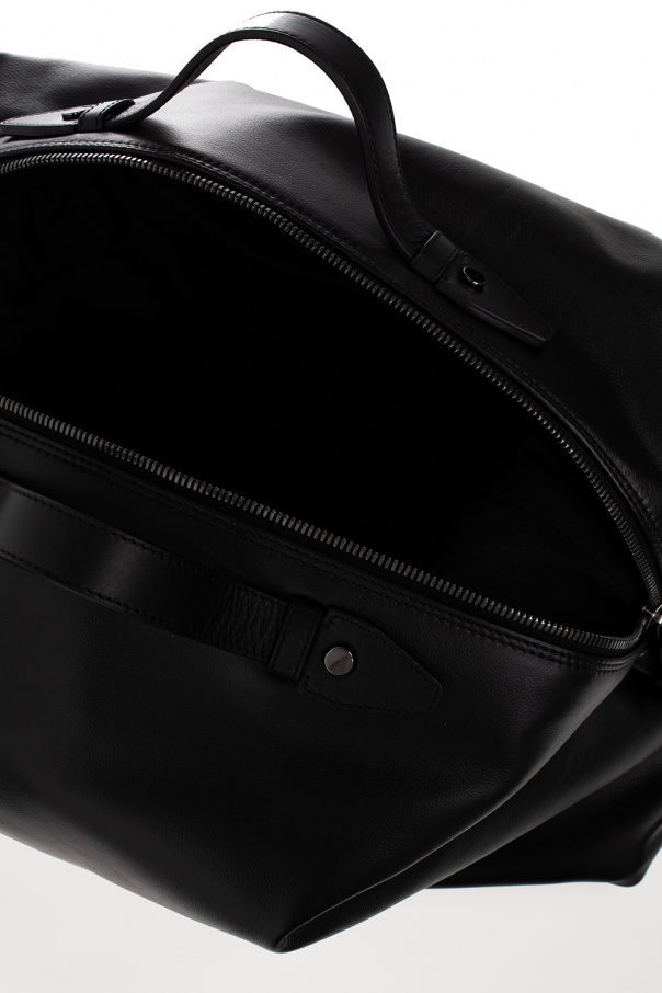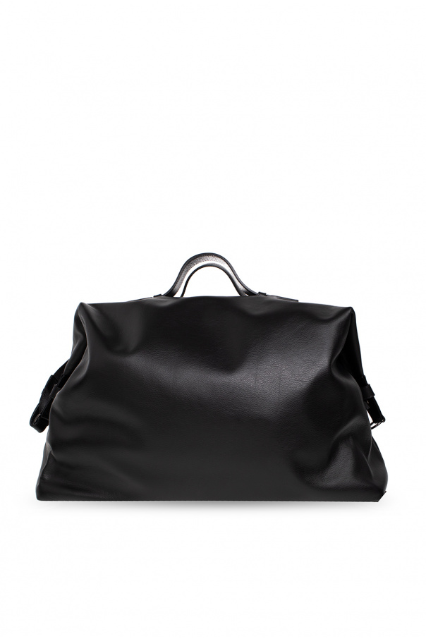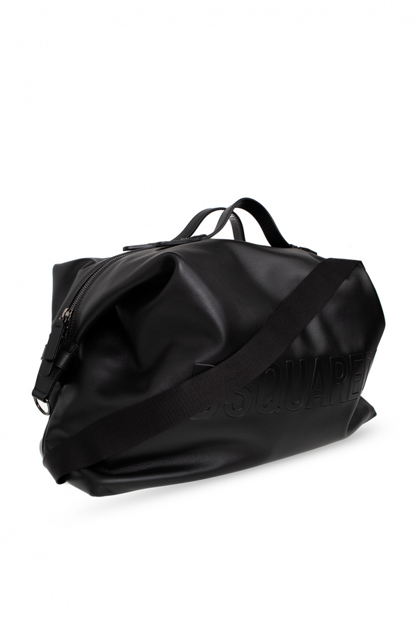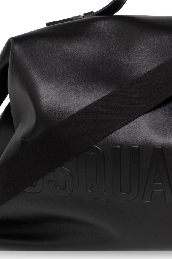 Black holdall bag from Dsquared2. Made of calf leather, this model features a two-way zip fastening, snaps on the sides, raised logo, two half-round handles, detachable and adjustable shoulder strap, dark silver-tone metal hardware and one internal compartment with one zip pocket.