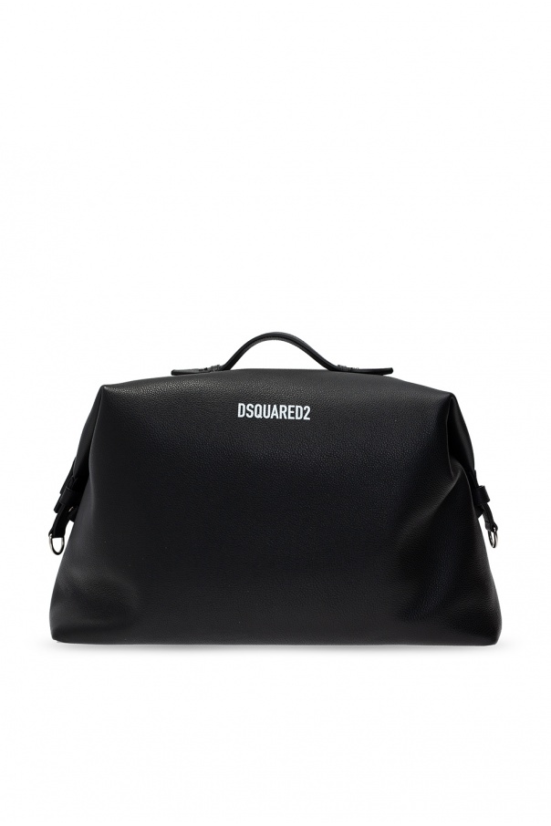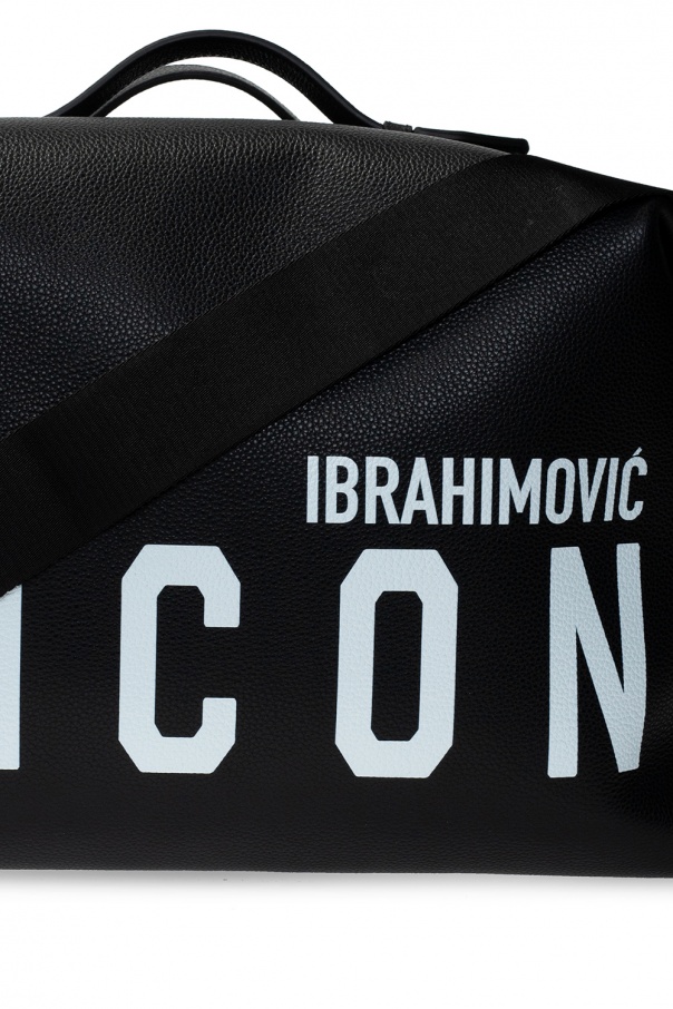 Black duffel bag from Dsquared2, the ‘ICON lbrahimović X Dsquared2’ collection. Printed with the brand's logo in white, this leather-crafted design secures with a two-way zip and features two half-round handles, a detachable and adjustable shoulder strap, silver-tone metal hardware and one internal compartment with two slip pockets. The capsule collection was created in collaboration with the Swedish football player Zlatan Ibrahimović.