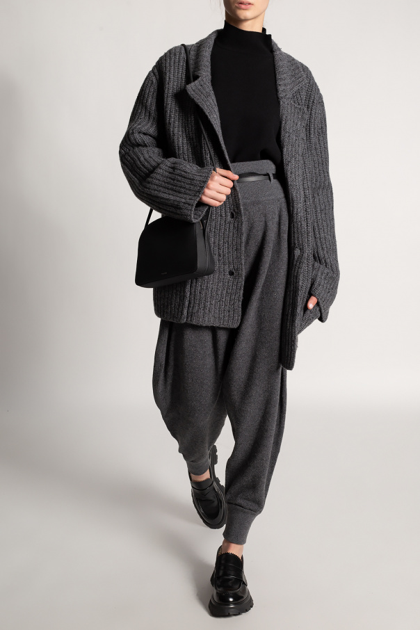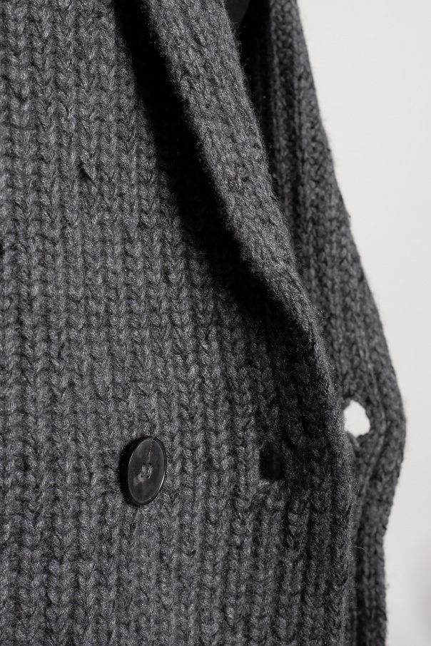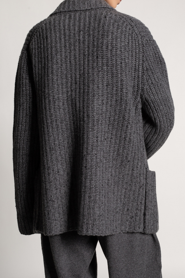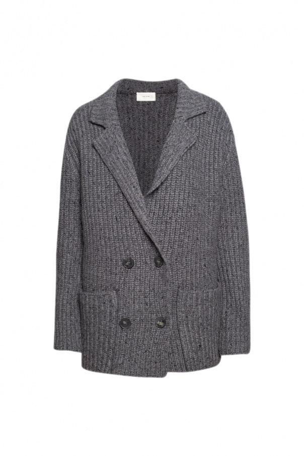 Grey double-breasted cardigan from The Row. Knitted from a cashmere and silk blend, this design features button fastenings and two slip pockets.