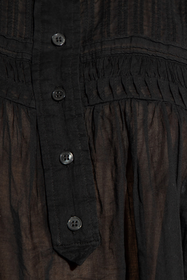 Black ‘Leaza’ sleeveless top from Isabel Marant. Made of cotton with a relaxed fit, this style features a round neck with buttons and distinctive stitching details.