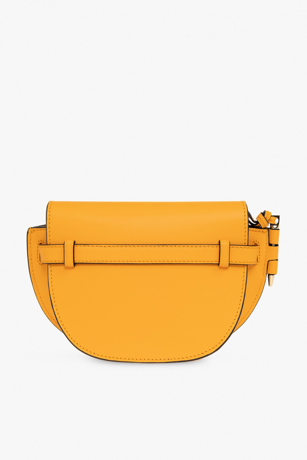 Orange ‘Gate Mini’ shoulder bag from Loewe. Crafted from calf leather, this model features a flap with a magnetic zip and decorative tie, embossed anagram, detachable, adjustable jacquard shoulder strap embroidered with a logo, gold-tone metal hardware and one internal compartment with brown suede lining and one slip pocket.