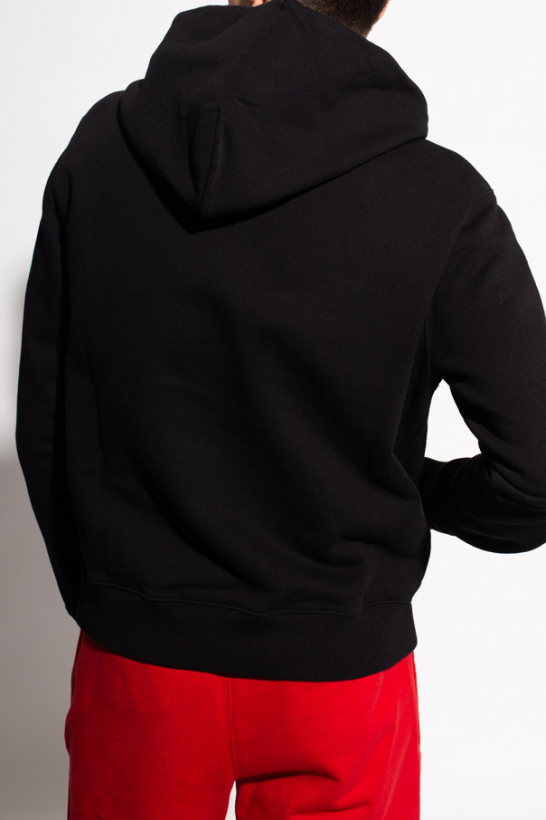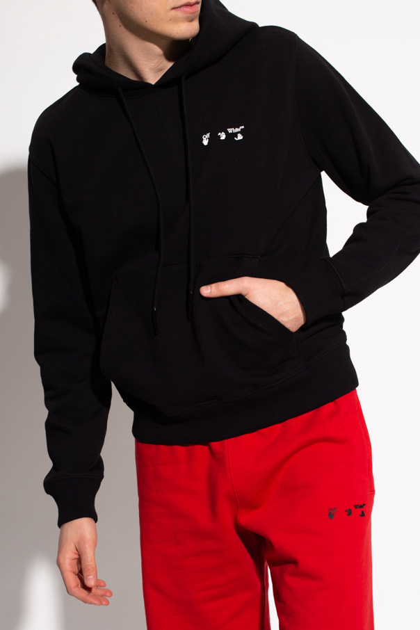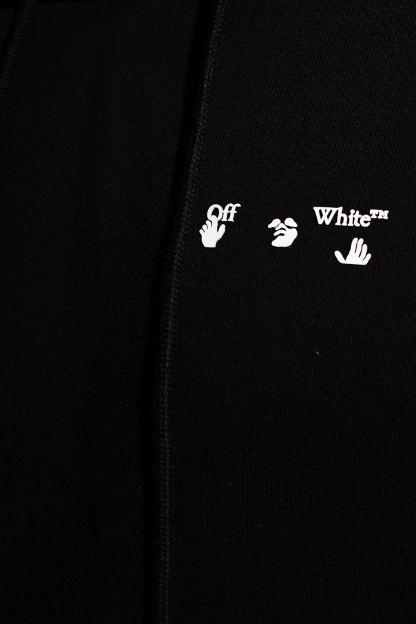 Black sweatshirt with a drawcord-adjustable hood from Off-White. Crafted from cotton, this hoodie features a white graphic print with the brand\'s logo, a kangaroo pocket and ribbed finishes on the bottom hem and cuffs.