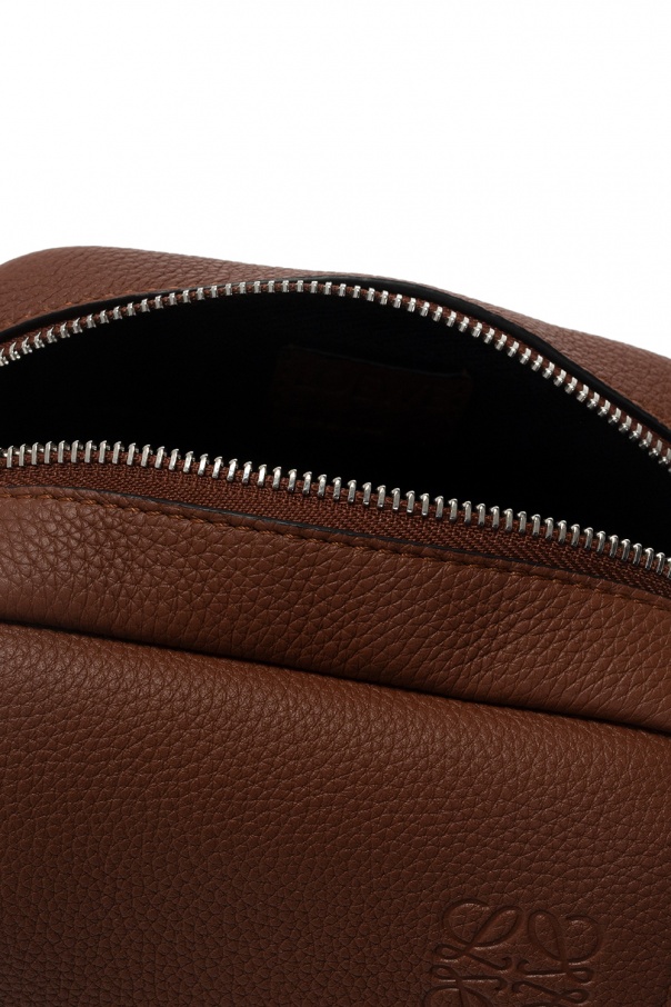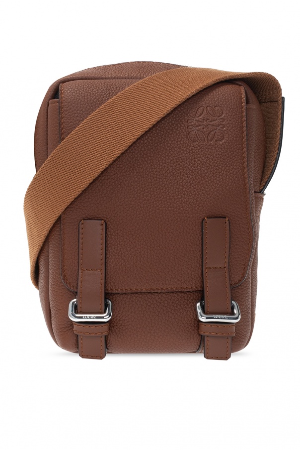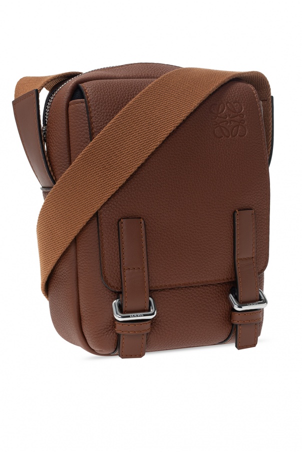 Brown ‘Military XS’ shoulder bag from Loewe. Made of calf leather, this design features a zip fastening, embossed logo, flap pocket fastened with buckle straps, adjustable strap, silver-tone metal hardware and one internal compartment with one slip pocket.