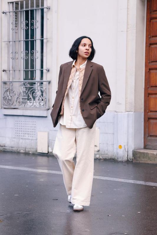 Розроблений із трохи просторою посадкою в плечах, щоб забезпечити ідеальний об'єм і драпірування. На підкладці.
