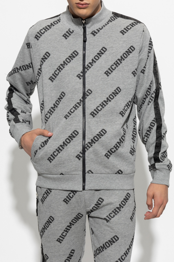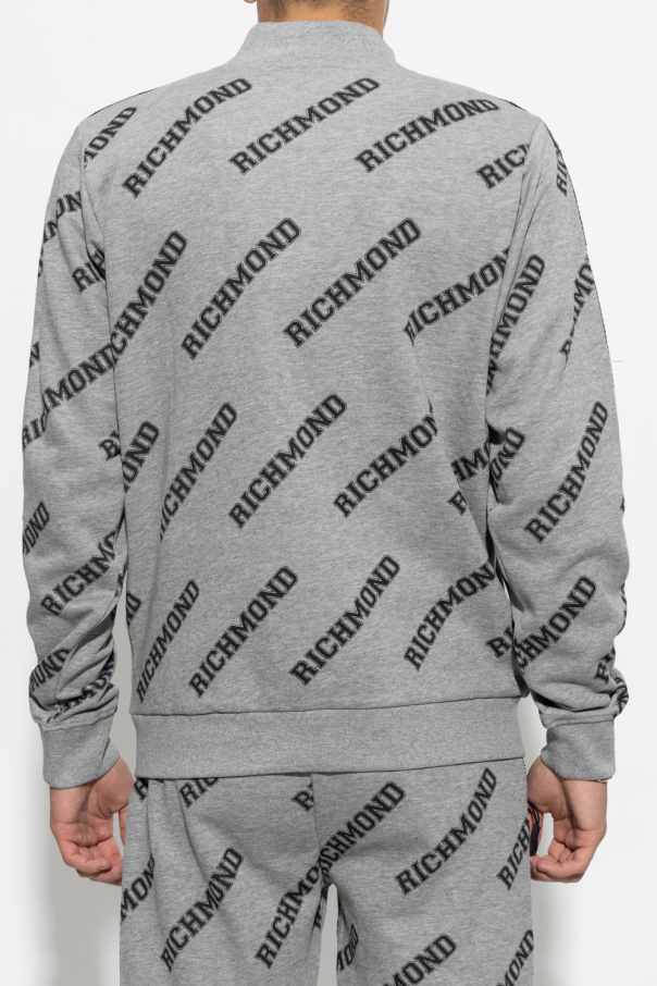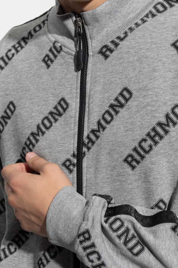 Grey sweatshirt from John Richmond. Crafted from cotton jersey, this style features a black graphic print with the brand\'s logo, a zip fastening, two slip pockets and elasticized trims on the standing collar, bottom hem and cuffs.