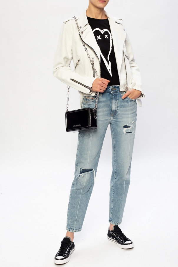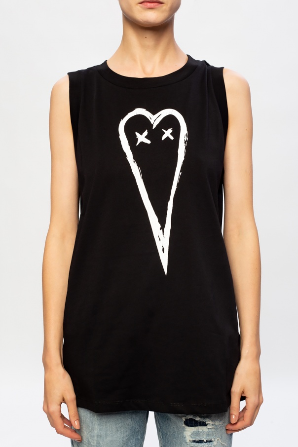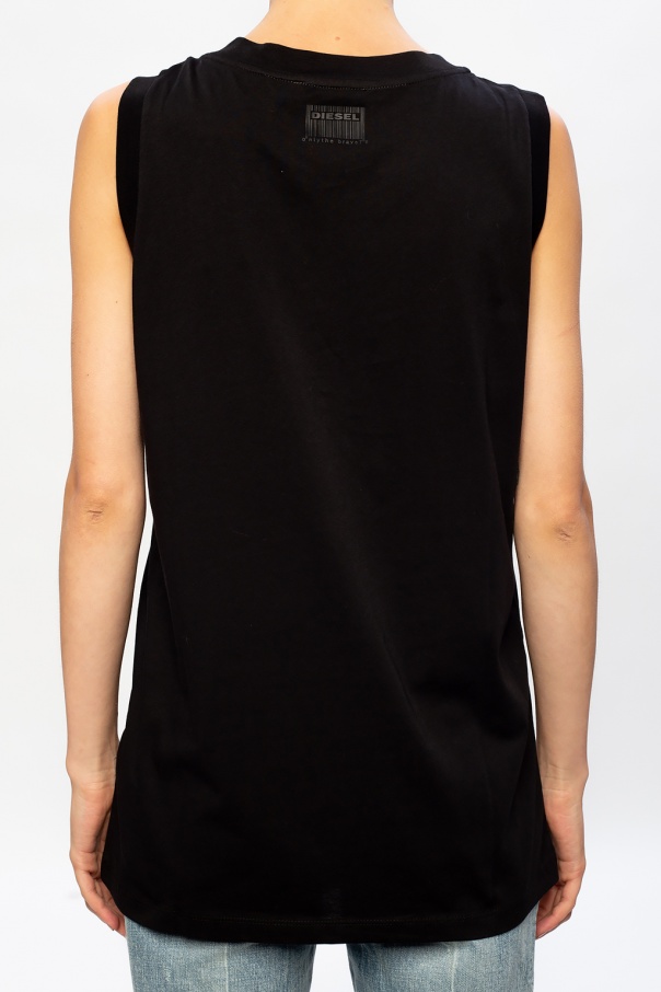 Black crewneck tank top from Diesel. Cut from cotton, this style features a contrasting white graphic print on the chest.