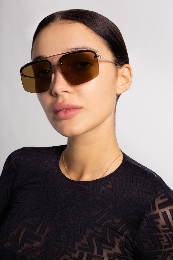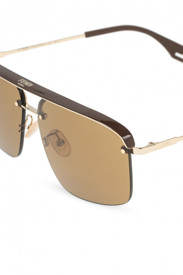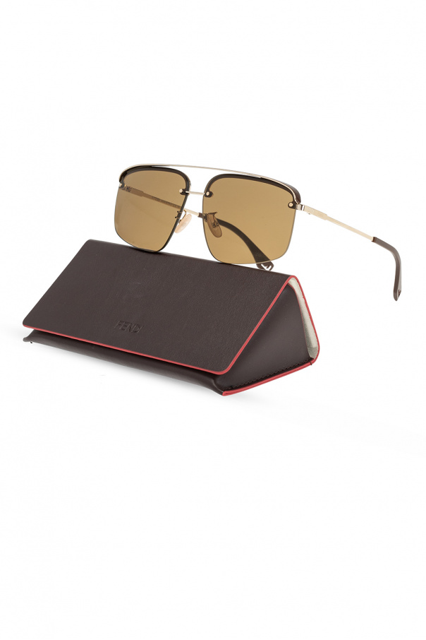 Brown and gold-tone sunglasses from Fendi. Emblazoned with a logo plaque, this pair comes with a brown and red protective case and features certified brown lenses with 100% UVA/UVB protection.