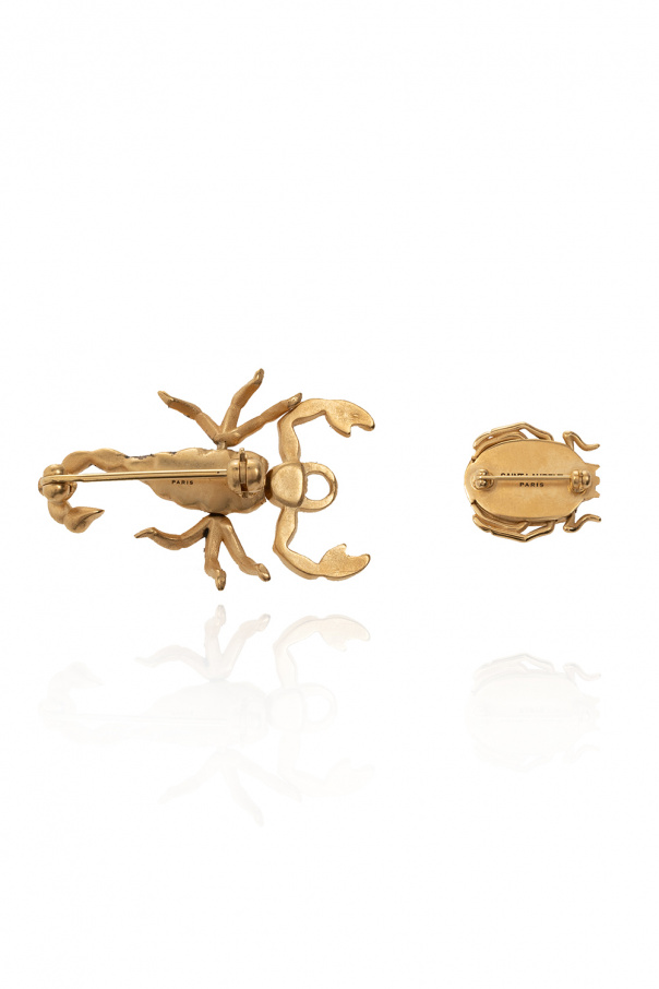 Gold-tone brooches from Saint Laurent. Made of brass, they feature decorative closures and an engraved logo.