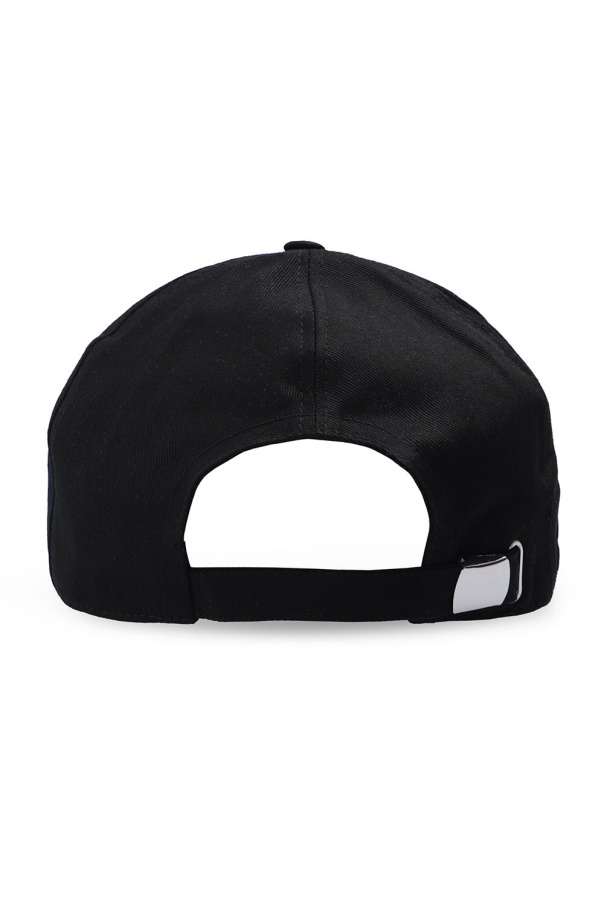 Black baseball cap from Iceberg. Made of cotton, this item features an embroidered white logo and an adjustable strap with a silver-tone buckle at the back.