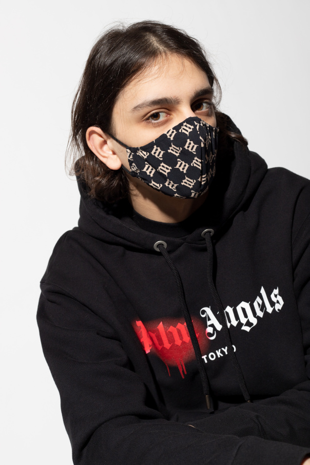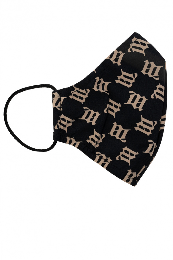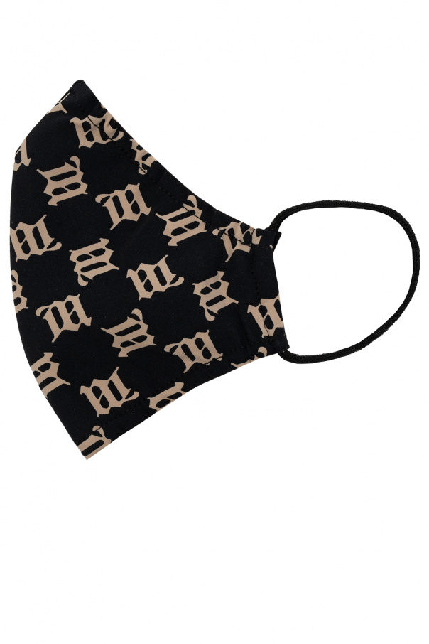 Black face mask from MISBHV. Crafted from recycled material, this item showcases a printed monogram pattern in beige.