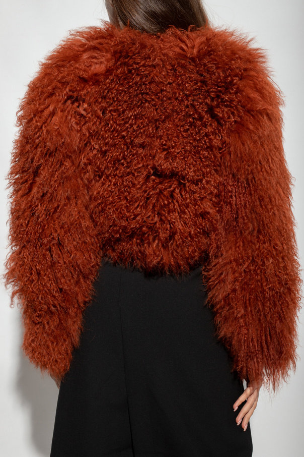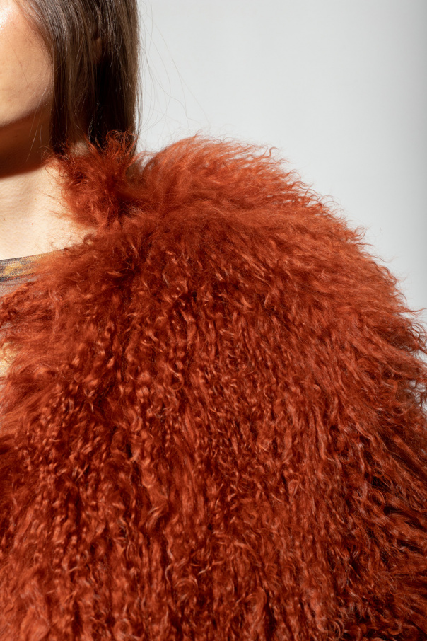 Orange ‘Brooke’ shearling jacket with long sleeves from AllSaints. Made of sheepskin.