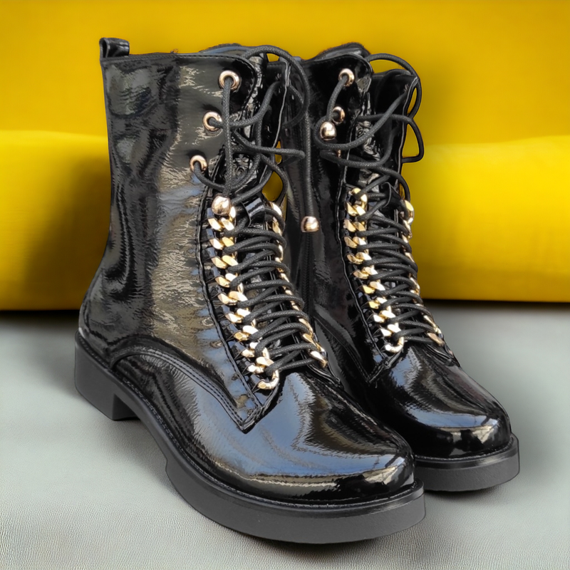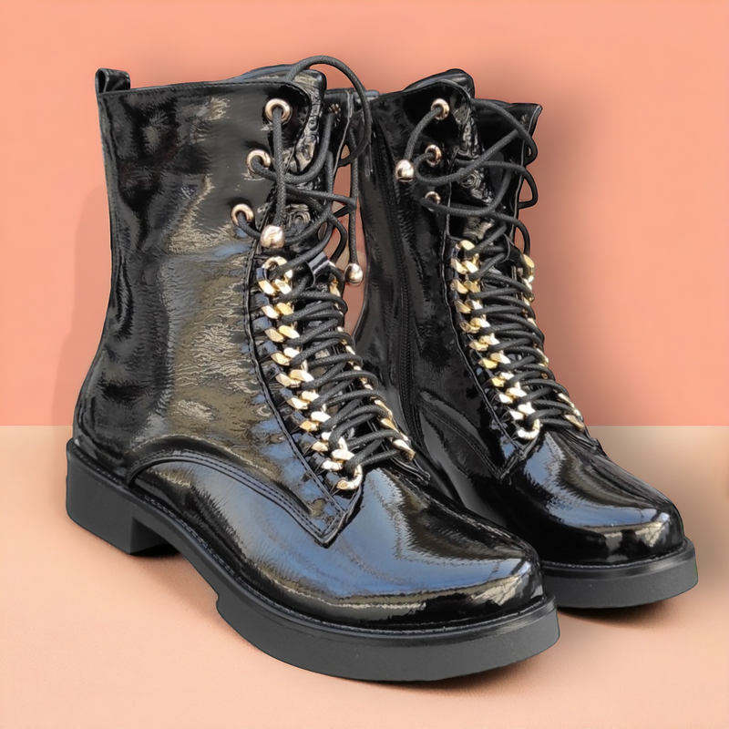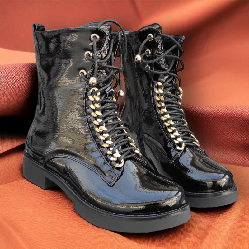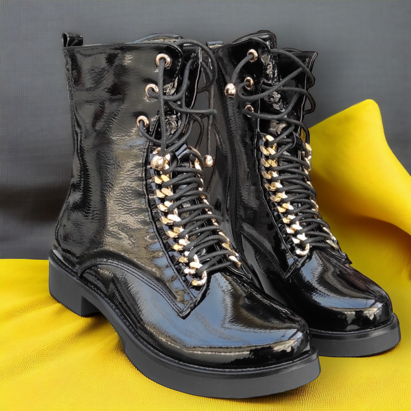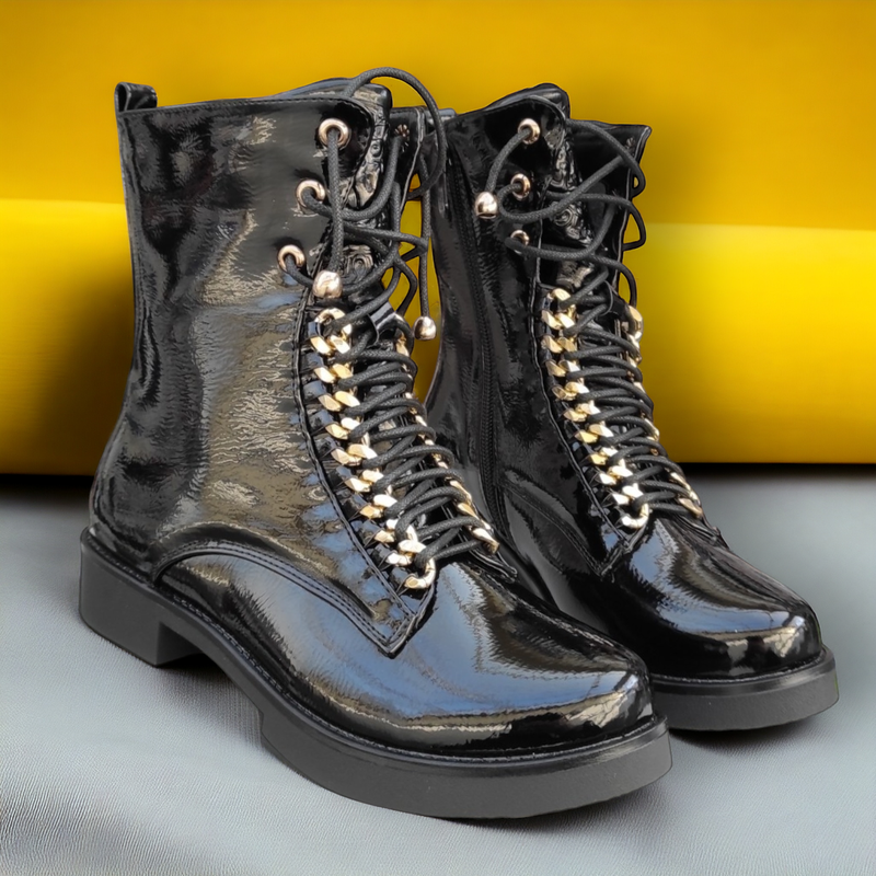 Матеріал верху:Лакована штучна шкіра ,Висота виробу:Середні ,Сезон:Осінь , Весна , Демісезон ,Матеріал підкладки:Бавовна , Вовна ,Категорія:Для дітей ,Стиль:Класичний ,Застібка:Замок ,Підбор:З каблуком ,Довжина устілки:21,5 см , 22 см , 22,5 см , 23 см , 23,5 см , - Shipping