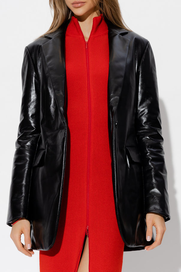Black blazer with light insulation from Loewe. Made of lamb leather, this garment features button fastenings, notch lapels, two flap pockets, long sleeves and single rear vent.