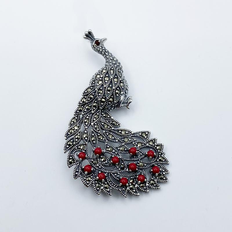 Вставки: марказит,гранат,коралл.Проба серебра ― 925°, клеймо Пробирной службы.