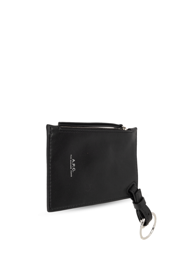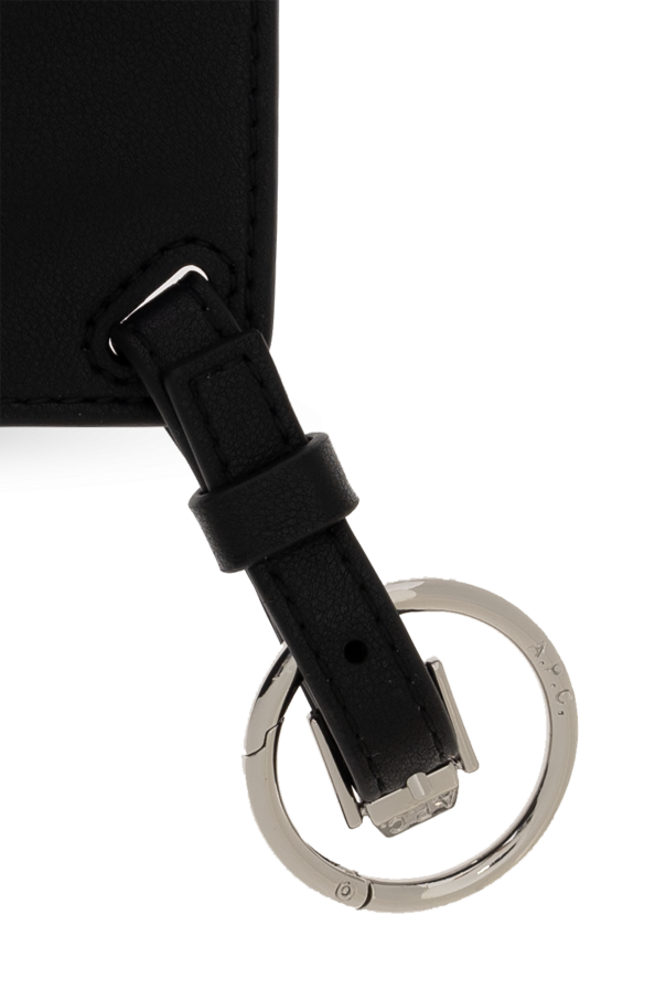 Black wallet ‘Nino’ A.P.C. Made of faux leather, this item features a silver-tone logo print, card slot on the back, zipped pocket, keyring on a strap and silver-tone metal hardware.