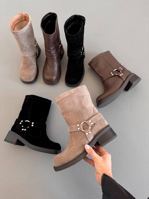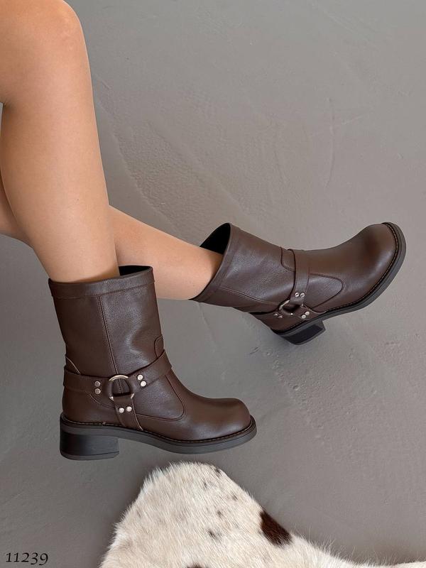 Зроблено в Україні?:Виробництво ,Матеріал верху:Шкіра ,Висота каблука:Низький ,Висота виробу:Середні ,Халява:Широкая ,Матеріал підкладки:Байка ,Сезон:Демісезон ,Тип підошви:Каблук , Пласка ,Довжина устілки:25,5 см , 25 см , 24,5 см , 23,5 см , 24 см , 26 см , 26,5 см ,Опис