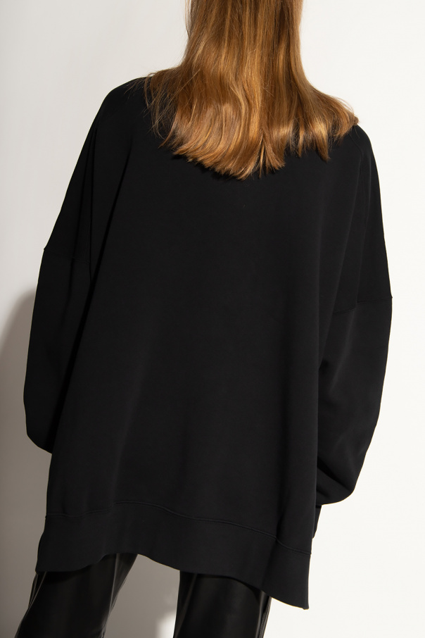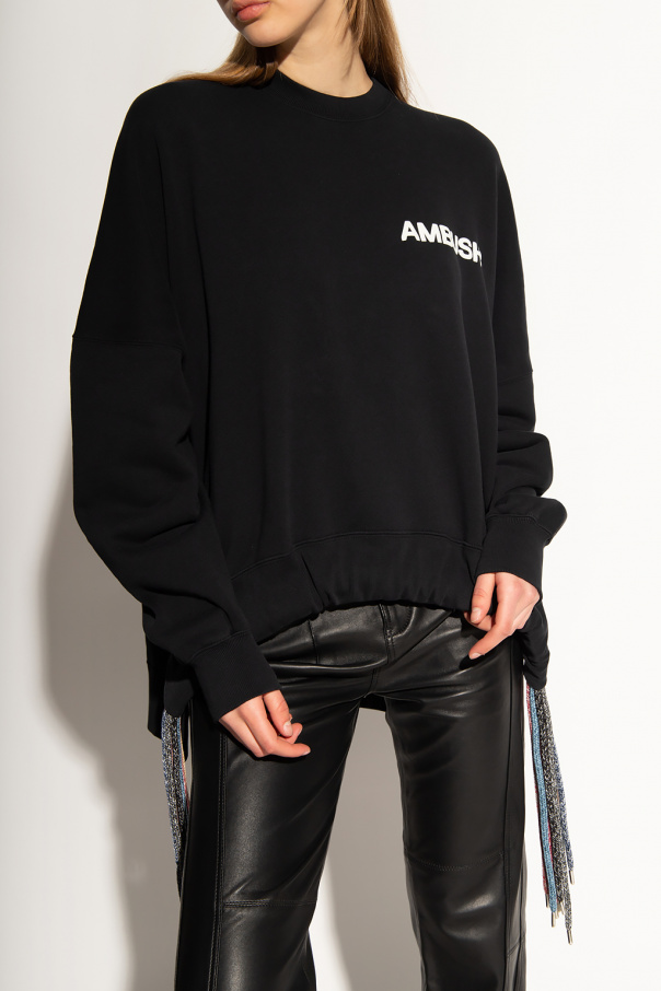 Black crewneck sweatshirt from Ambush. Made of cotton, this garment features a raised logo in white, multicolored drawstrings at the hem and ribbed trims.