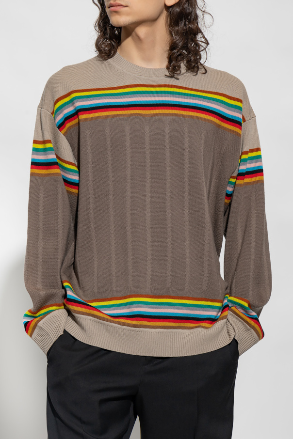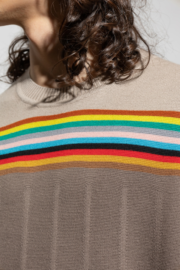 Brown and beige sweater from Paul Smith. Crafted from merino wool, this garment features a multicolored stripe pattern and ribbed trims at the crew neck, hem and cuffs.
