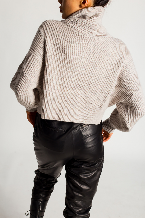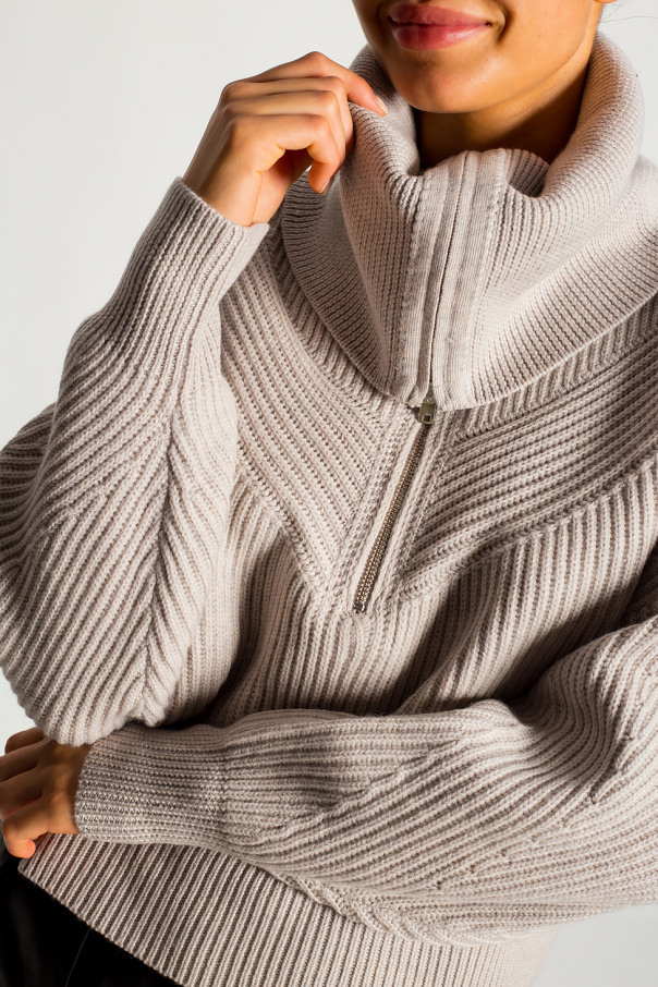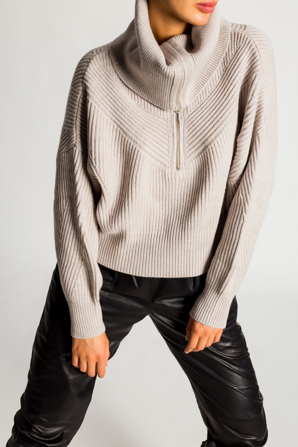 Grey sweater from Iro. Crafted from merino wool in a rib-knit design, this style features an oversize collar with silver-tone zip detailing and side slits on the bottom sides.