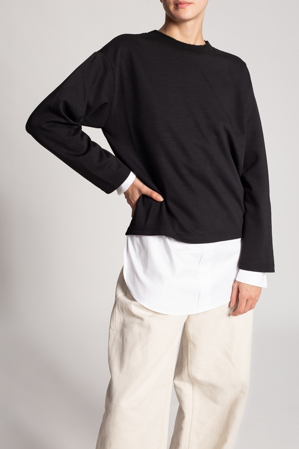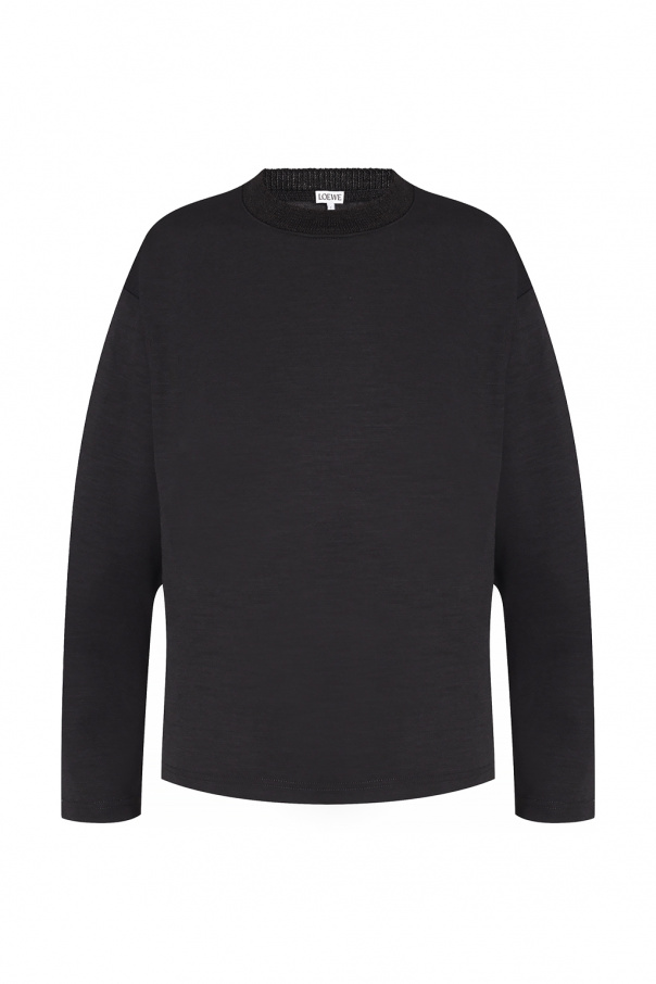 Black and white sweatshirt from Loewe. Defined by two contrasting layers, this long sleeve design features a ribbed crewneck and long sleeves with button cuffs.